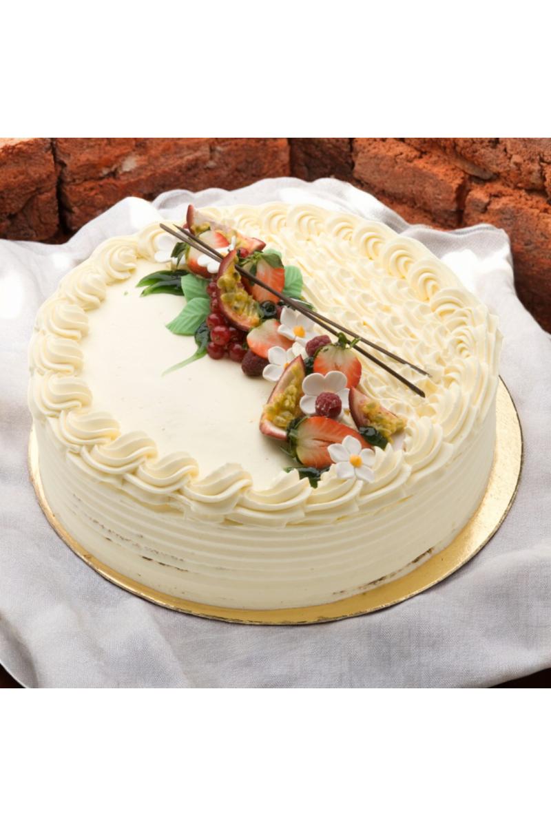 3 lag med saftig bunn som dynkes og fylles med vaniljekrem. Pyntes med krem.